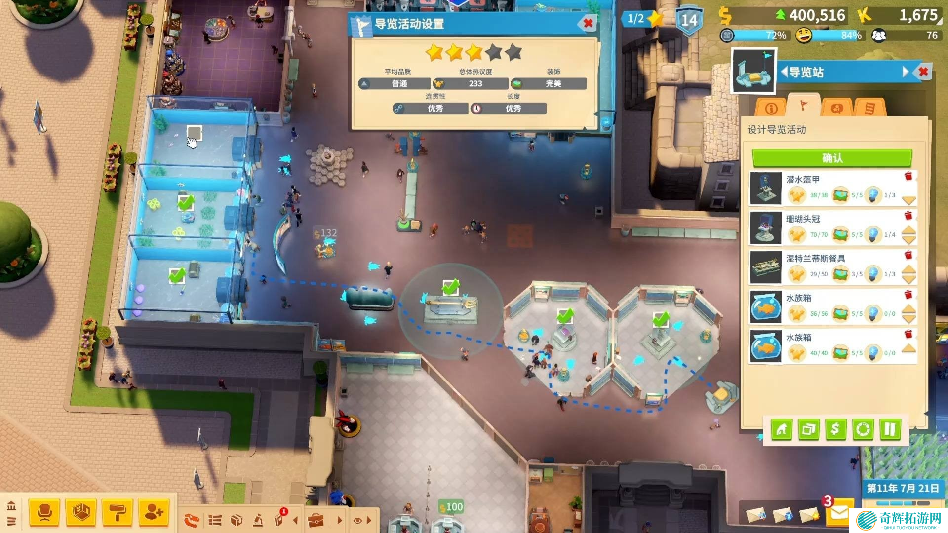 进入游戏后,专注提升第一个博物馆的评级,至少要达到二星。