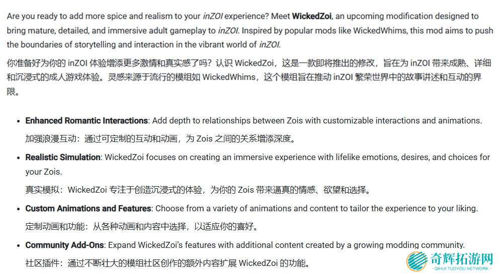 WickedZoi的加入,将让你的游戏体验更加丰富多彩,敬请期待MOD 正式上线!