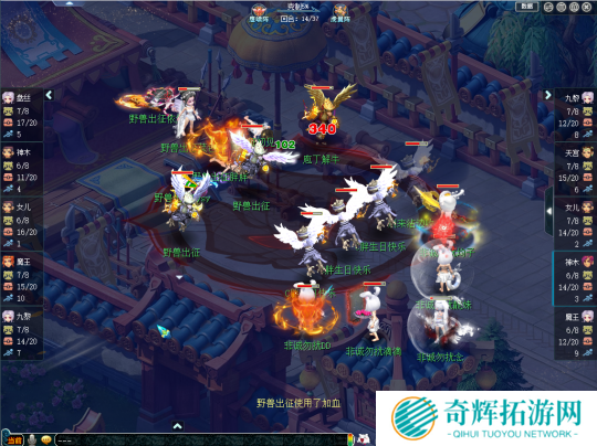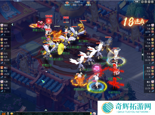 随后,拿到优势的【非诚勿扰】继续力保九黎城和魔王寨输出,于第14回合将【野兽出征】除了盘丝之外的所有人物单位击倒。