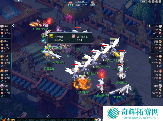 比赛第18回合,【野兽出征】女儿村意外被【非诚勿扰】的死亡血宠击倒,被赋予了10个回合的死亡禁锢状态。这个时候【野兽出征】不仅明显处于劣势,在缺少普陀山的情况下还缺少持续回复能力,再加上【非诚勿扰】九黎城搭配魔王寨的频繁输出,整体情况非常危急!