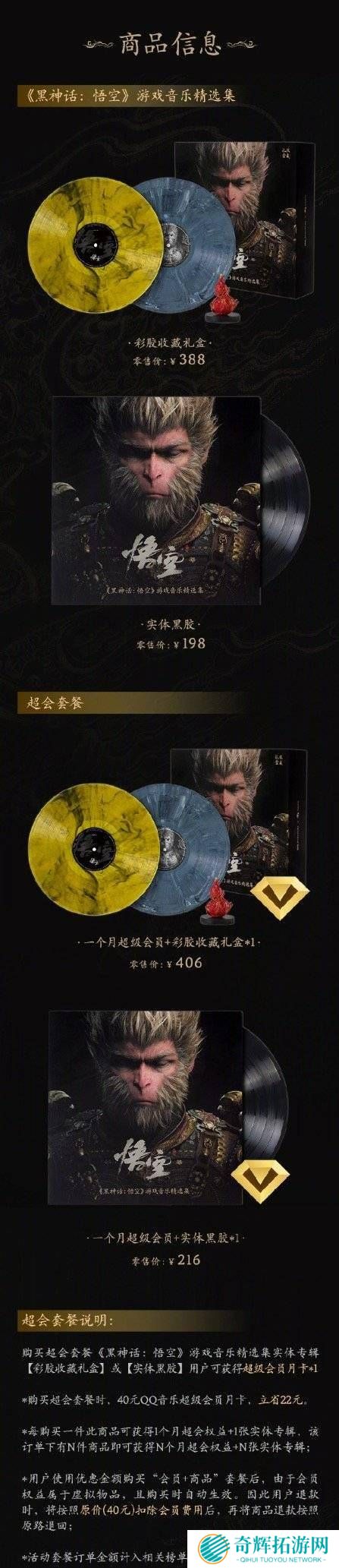 为了满足不同玩家的收藏需求,精选集推出了两种不同版本的实体专辑。其中,彩胶收藏礼盒版售价为388元,内容丰富,包含了彩胶封套、彩胶唱片、碟镇、歌词本、NFC纪念卡、制作人寄语以及精美海报。这一版本不仅音质卓越,更在包装和设计上独具匠心,是收藏爱好者的不二之选。