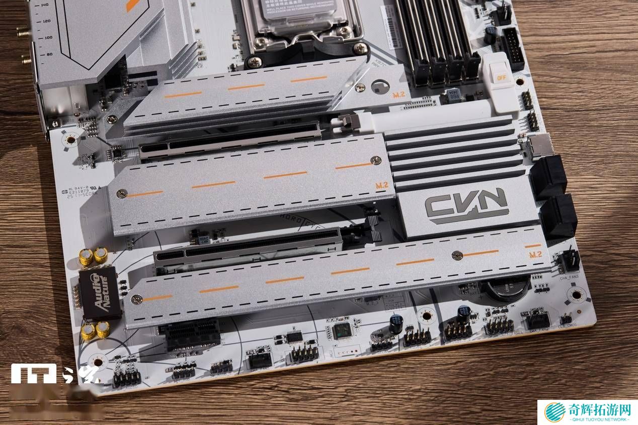CVN X870 ARK FROZEN V14方舟主板还具备出色的扩展性和实用性。主板配备了新一代显卡快拆设计,装机体验更加便捷。同时,主板还支持5G+Wi-Fi 7网络,满足用户对于高速网络的需求。在存储方面,PCIe 5.0 x4 M.2固态插槽和40Gbps Type-C接口也进一步提升了主板的扩展性和实用性。