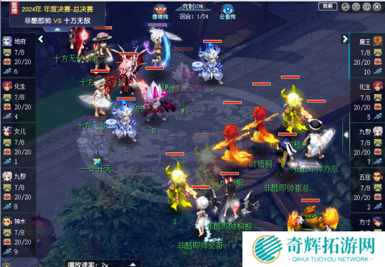 【十方无敌】化生寺此时为全队一速,被【非酷即帅】不断封印无法活血回伤,【非酷即帅】双输出火力全开,最终25回合成功清场晋级决赛。