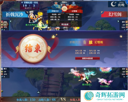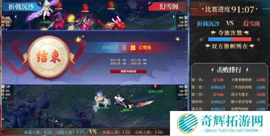 最终,【幻雪阁】以146:139的总击败人数差距,险之又险的击败【折戟沉沙】。对于这两个帮派来说,这个差距并不大,甚至一次163的神佑、一只龟速宠的神佑,都有可能在最后关头改写占据。