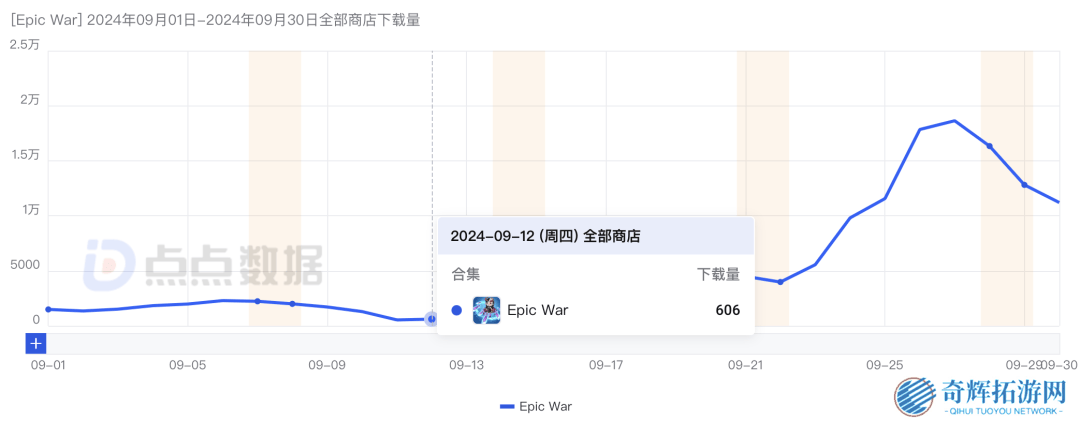 自2024年9月12日上线这一副玩法版本以来,《Epic War》的下载量迅速攀升。点点数据显示,该游戏在美国、巴西等市场的下载量激增,上线15天后,全球下载量增长了30倍。这一成绩不仅证明了冰川网络在营销创新上的成功,也展示了副玩法模式在游戏推广中的巨大潜力。