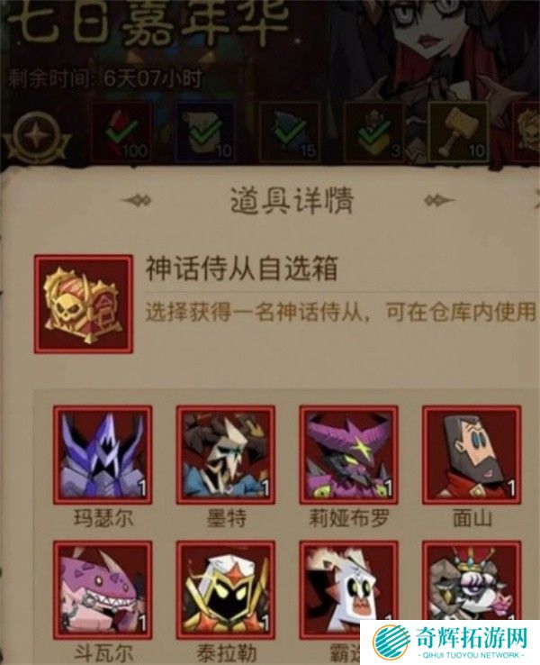 游戏开局的7天自选箱可以直接选择奶牛之王,如果没有其他更优选择,建议优先获取。
