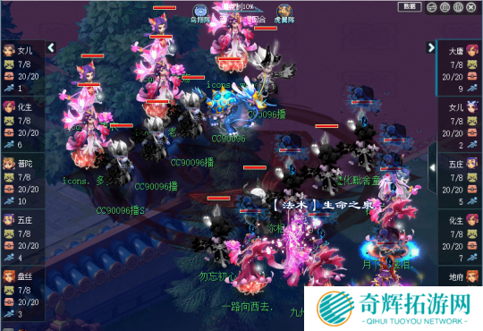 齐云楼欺负紫禁城没有速度,持续压制紫禁城大唐,禁疗紧箍咒将其击杀,五庄则持续封印化生寺不让其回复,紫禁城全队血量因为紧箍咒扣血剧烈降低。直到20回合,紫禁城大唐才终于拉起,化生寺晶清解掉了全队的紧箍咒。