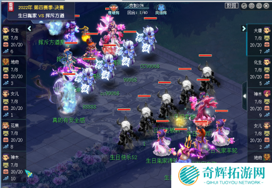 23回合,生日胤家趁挥斥方遒化生寺活血之机,点倒了挥斥方遒花果山并延长,紧接着27回合,生日胤家强点挥斥方遒带盾神木成功击倒。紧接着生日胤家换出3只谛听和**力劈,对挥斥方遒进行了地毯式的轰炸,挥斥方遒单位一个接着一个倒地,最终40回合,生日胤家开启无间地狱,成功将挥斥方遒清场,