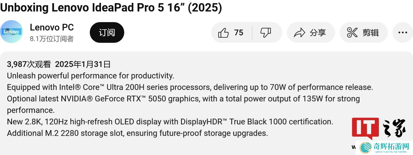 而联想 PC 官方油管账号则在 1 月 31 日的 Lenovo IdeaPad Pro 5 16"(本站注:大致对应国内小新 Pro 16 GT)笔记本电脑开箱视频的简介中表示该机型可选配 RTX 5050 显卡。