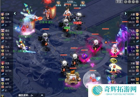 对战方生日快乐阵容:女儿、盘丝、化生、地府、花果 虎阵4保一