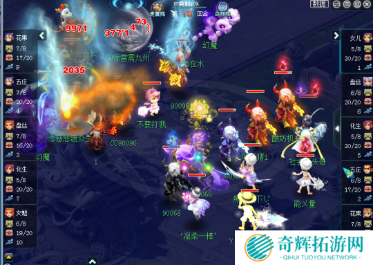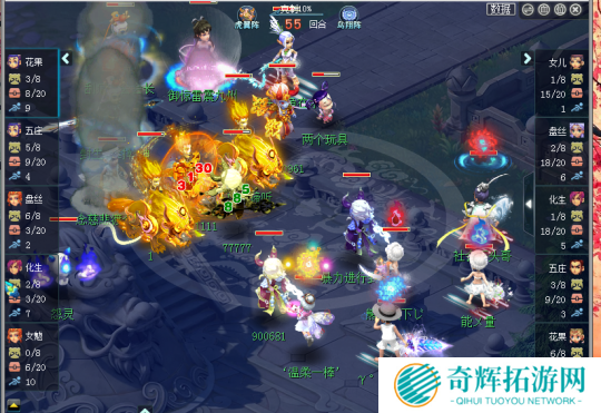 对战方珍宝阁阵容:盘丝、五庄、化生、花果、女魃 虎阵双封