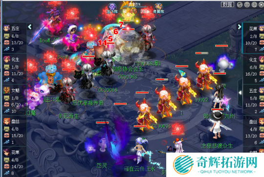 观战方珍宝阁阵容:五庄、盘丝、化生、花果、女魃 虎阵