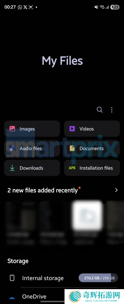 文件管理器应用界面进行了改进。“分类”部分经过视觉更新,呈现出更具吸引力且更整洁的布局。One UI 8 的主要目标似乎是解决 One UI 7 中未能完全解决的任何遗留不一致或“粗糙边缘”问题。值得注意的是,这个早期版本的 One UI 8 文件管理器目前仅限于运行安卓 16 及以上版本的设备,表明其对最新操作系统框架的依赖。