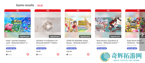值得注意的是,售价20美元的升级包中,《超级马里奥派对:空前盛会》和《星之卡比:遗忘之地》不仅提供了画质提升,还加入了全新内容。前者增加了新小游戏,并支持Joy-Con 2鼠标控制、内置麦克风和USB-C摄像头扩展功能;后者则带来了全新的故事模式。