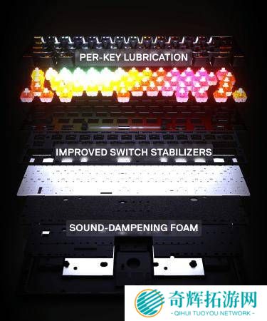 尽管尺寸有所缩减,但Apex Pro Mini Gen 3在细节处理上并未妥协。键盘采用了双色PBT键帽,不仅手感舒适,而且耐磨耐用。同时,每个按键都支持1680万色RGB灯效,为玩家提供了丰富的个性化选择。键盘在出厂前还经过了润滑处理,内部配备了三层消音泡沫结构,有效降低了按键噪音,提升了使用体验。
