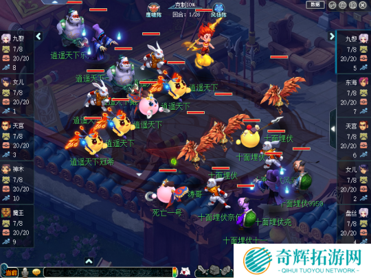 比赛第24回合后,双方进入决胜时刻。经过一轮试探之后,【十面埋伏】在第26回合靠着九黎城、东海渊的输出点掉了【逍遥天下】魔王,拿下比赛胜利,成功卫冕萌新杯冠军。