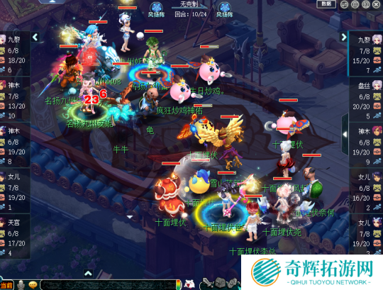 由于参与萌新杯的战队普遍不会携带辅助门派,回血能力相对较差,所以【十面埋伏】的超级神牛(辛丑)只要站住脚跟就能轻松打出爆炸伤害,使得对手不得不将主要进攻目标放在清宠上。
