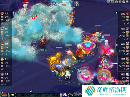 随后,珍宝阁开启了两波面伤节奏,在狮驼、魔王协同配合下,明秀园损失了非常多的召唤兽。