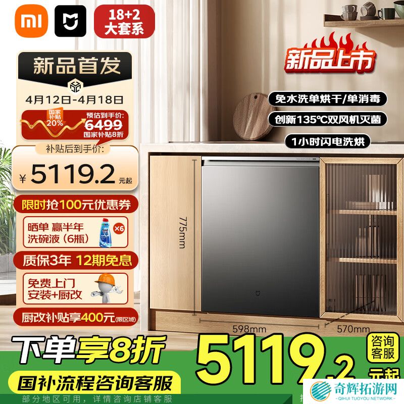 本站 4 月 14 日消息,小米米家智能嵌入式洗碗机 P20(18 套)现已在京东平台开售,新升级消存一体,售价 6499 元,国补价 5119.2 元起。