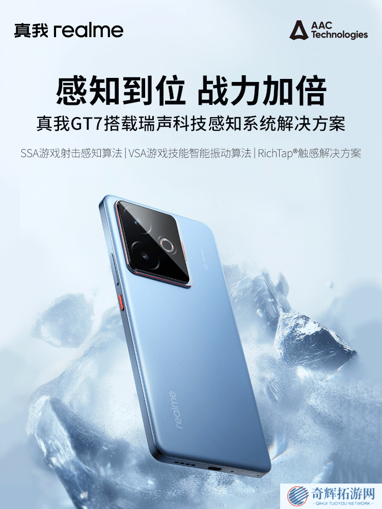 在科技界的万众瞩目下,真我GT7系列新品于近日震撼发布,携手瑞声科技为用户带来了前所未有的感知系统革新。这款新机通过AAC的“AI超感**”技术,在声音与触感两大维度上,为用户精心构建了一个沉浸式的感官盛宴。