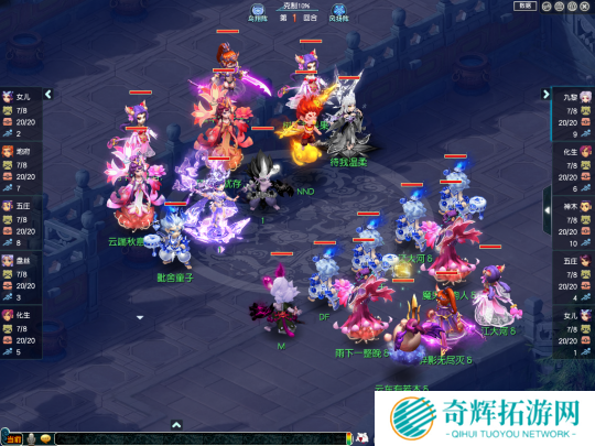 进入比赛后,紫禁城(对战方)所选阵容为“女儿、地府、万寿力五庄、盘丝、化生”,曲阜孔庙(观战方)所选阵容为“九黎、化生、五庄、神木、女儿”。从阵容来看,紫禁城一方选择了较为稳妥的国标点杀体系,曲阜孔庙则采用了双封面伤体系。