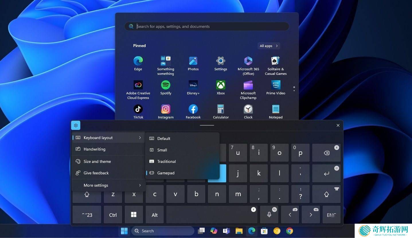 微软还为游戏爱好者们带来了一项新特性——GamePad触控键盘布局。这一布局新增了垂直排列的按键加速器,这一设计似乎预示着微软正在为掌机游戏的优化铺路,未来或将为游戏玩家提供更加专业和便捷的操作体验。