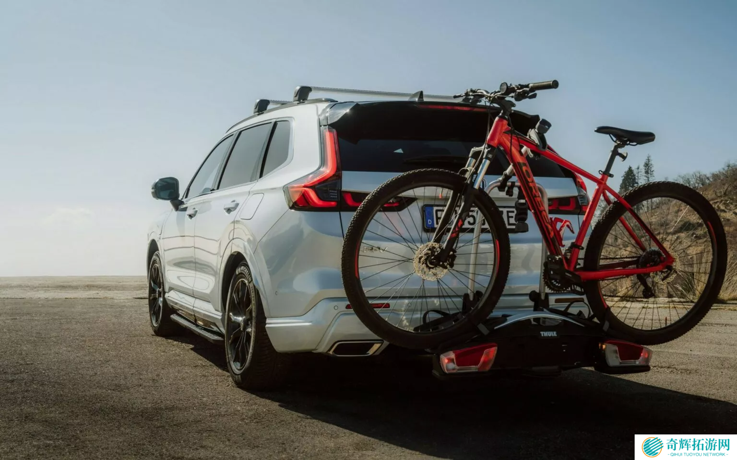 外观上,这款概念车的设计并不张扬,同时配备了诸多实用配件,包括车顶行李架和 Thule 自行车架。