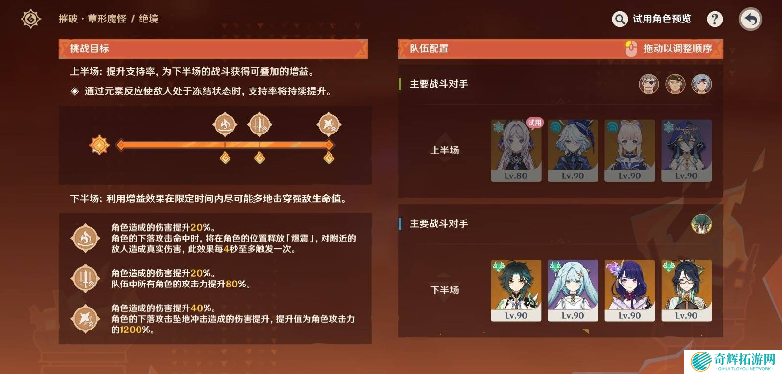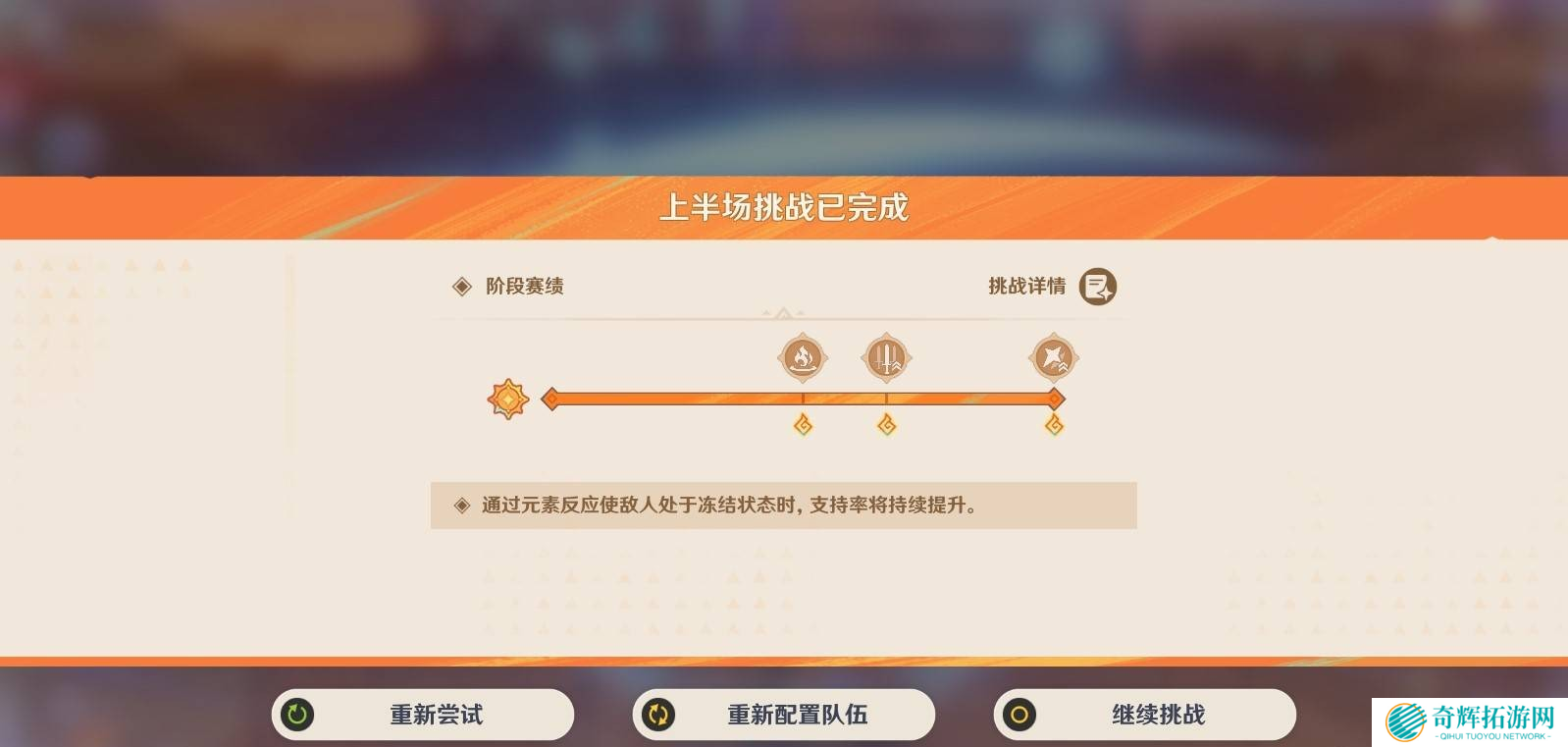 通过元素反应将敌人冻结时,支持率将逐渐提升,有助于下半场战斗。