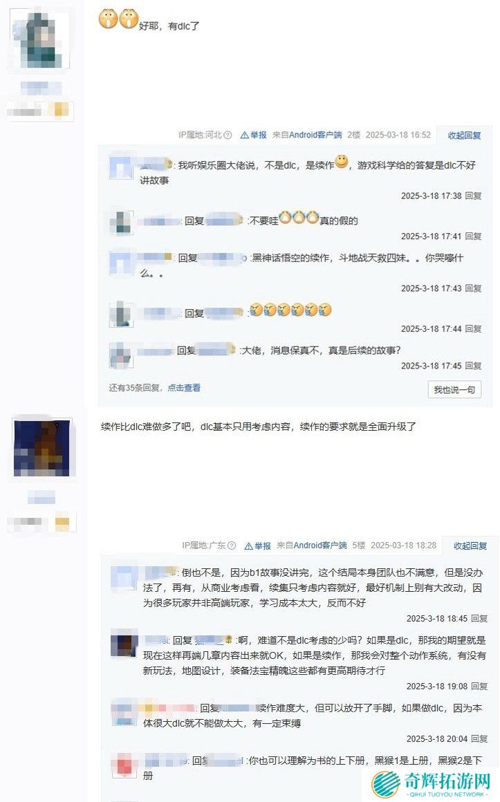 在评论区有玩家表示:“大的要来了!”“期待游戏DLC早日推出”“我要大闹天宫”“出续作就得要求创新了,而且现在有钱有时间,就得把内容做完整。”