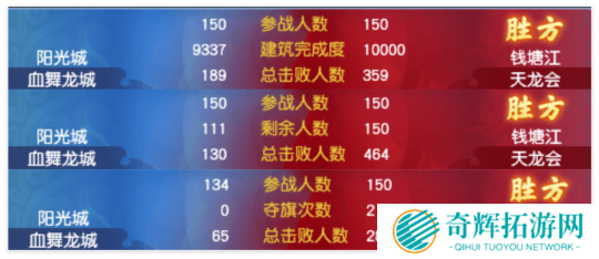 比如,在【血舞龙城】同【天龙会】的对决中,【天龙会】就靠着三攻队伍出色的发挥,成功压制对手所有队伍,拿到了极高的击败优势,轻松拿下晋级名额。