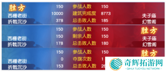 比如,在【幻雪阁】同【折戟沉沙】的对决中,【幻雪阁】不仅在周六的比赛中靠着一支顶级三攻队伍的发挥,拿到了决定胜负的击败优势,还在周日夺旗环节击败了西栅老街服战队,成功为帮派奠定胜局。