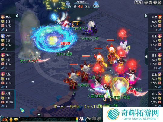 随后,曲阜孔庙抓住时机拉了一波“谛听海”。但由于珍宝阁双封和化生的抗性极高,这波谛听海灌下来的伤害并不足以致命。随后,珍宝阁众人起身,果断拉出一波召唤兽抗住了曲阜孔庙的后续输出。