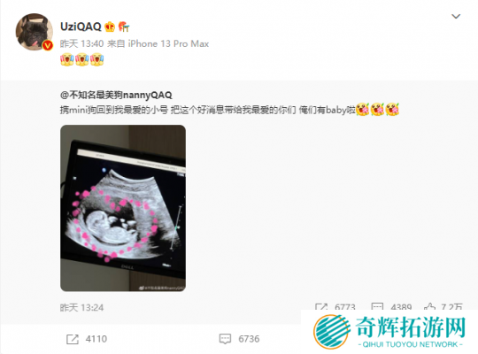 昨日,UZI的爱人晒出了自己有**aby这一喜讯,信息一出便引起了网友轰动,就连UZI本人也非常高兴。