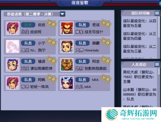普陀山在一众老板离开后,佳佳发挥实力,一波吸引了多位“新老板”加盟普陀山。新老板加盟后的普陀山虽然在硬件实力上尚需努力,但其指挥实力是“一等一”的强。在佳佳和陌上的指挥下,这支“东拼西凑”的战队接连击败各路豪强,挺进了群雄逐鹿第二赛季决赛舞台。
