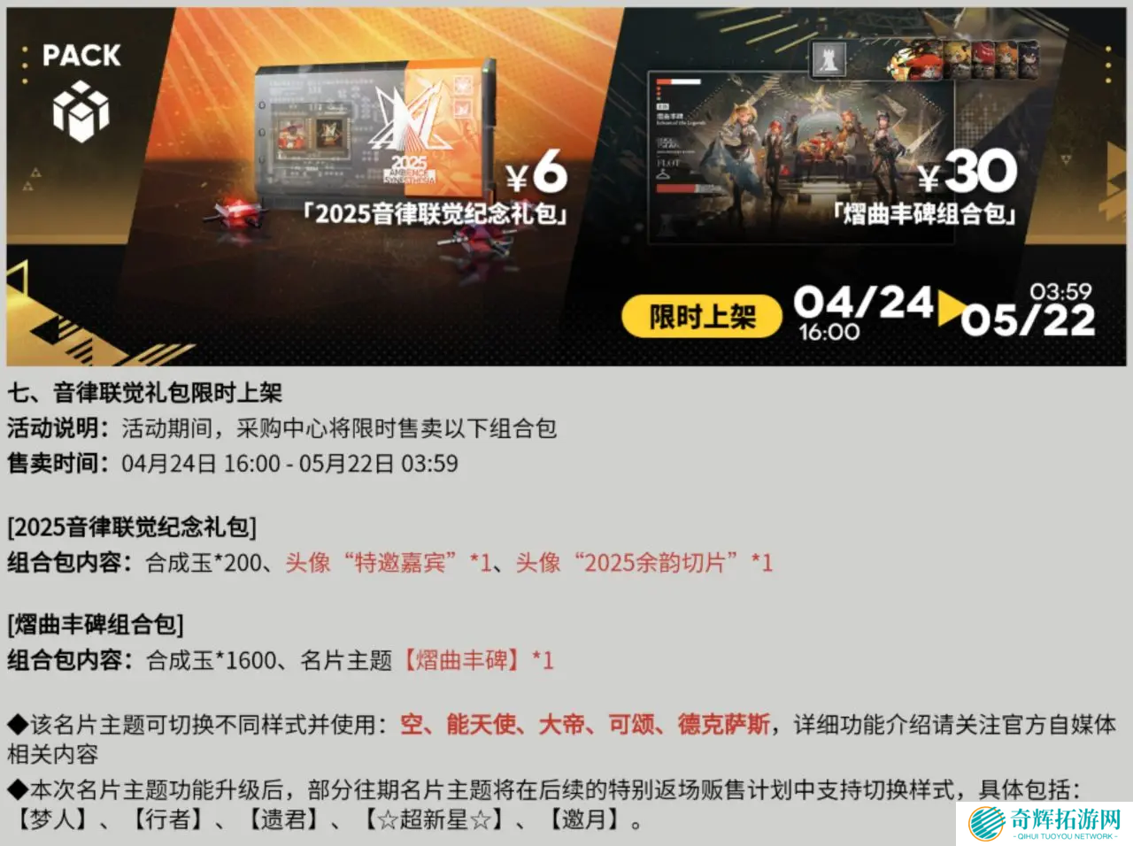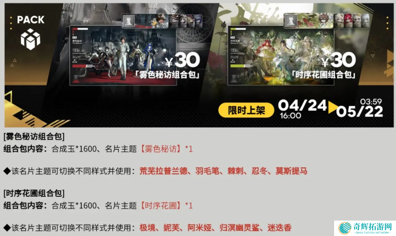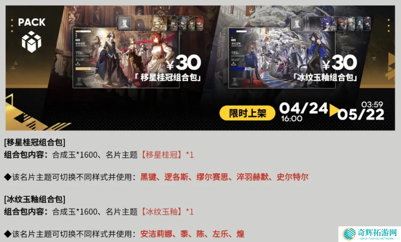 1、与皮肤一同上线的,还有对应的主题礼包,本次共计5个新礼包,包括皮肤券、合成玉、养成资源等应有尽有。
