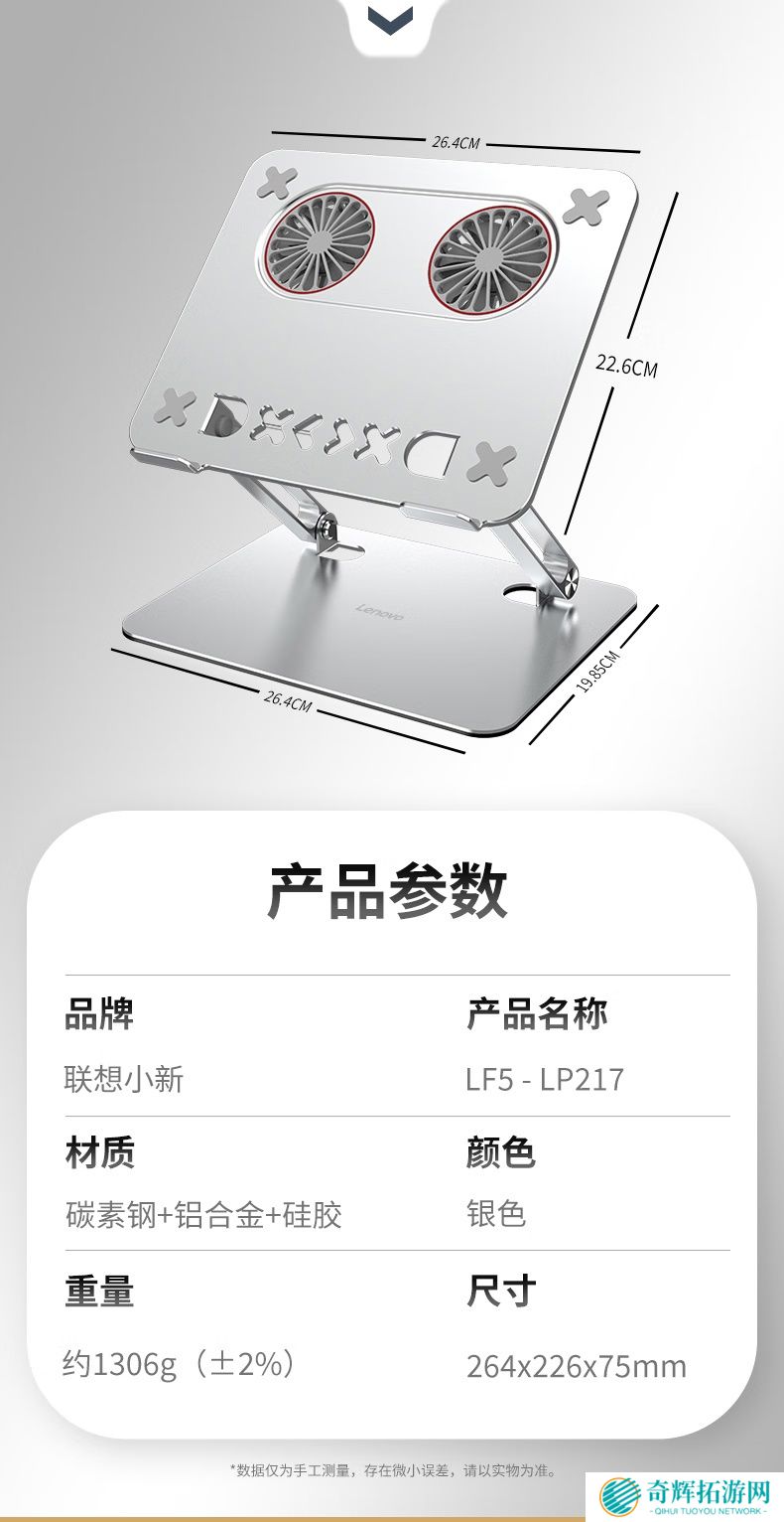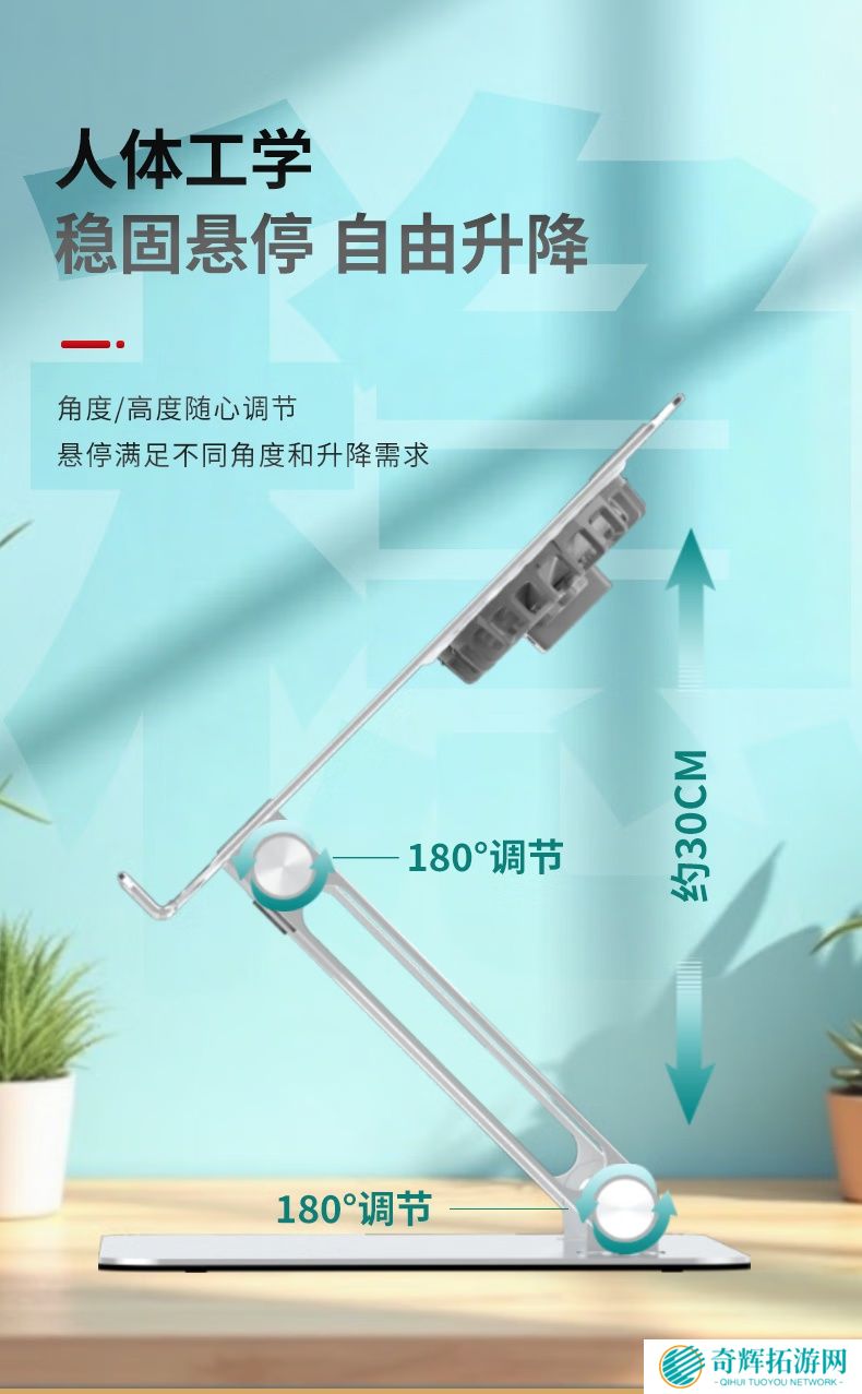 这款散热支架采用人体工学设计,支持悬停,高度和角度都可以自行调节,可满足不同角度和升降需求。本站附示意图: