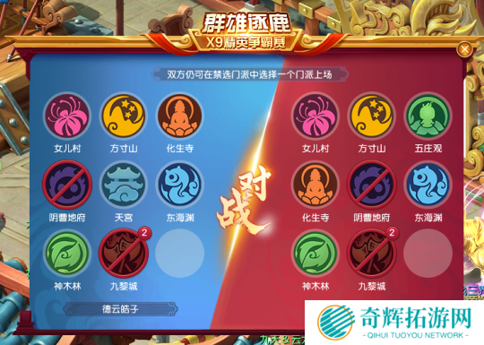 就精锐组、勇武组的比赛情况来看,大家依然会在禁选阶段针对九黎城,但这种禁选策略主要是为了限制其他门派。这也表明,九黎城目前依然是X9最强的输出门派,如果无法使用克制其发挥的阵容,就只能比拼战术细节了!