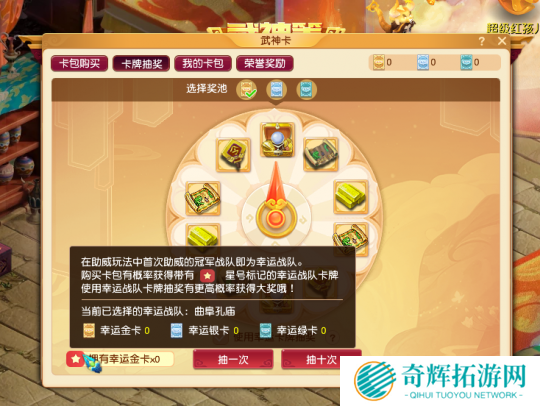 值得一提的是,购买卡包或有概率抽到自己助威的战队,抽到的卡片会附带“幸运”属性,使用这种卡片抽卡后,将拥有更高的大奖概率。要知道,金卡的幸运池不仅有五宝盒,还有特赦令牌、高级魔兽要诀等奖励。