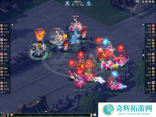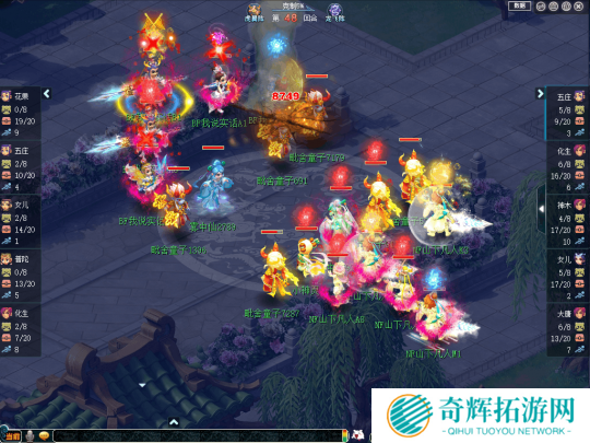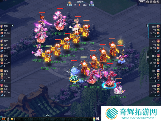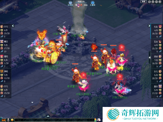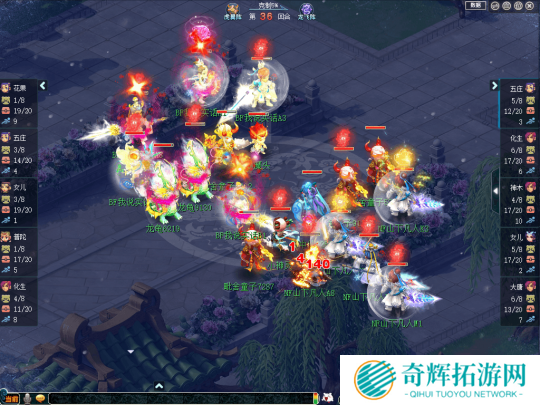 比赛前期,【张三李四】凭借阵法大克带来的抗性优势,不断使用光辉之甲、罗汉金钟、金刚护法等手段增加自身抗性,令【起飞起飞】的输出大打折扣。与此同时,【张三李四】还凭借盘丝、五庄的封印打断【起飞起飞】输出节奏,令其三个输出门派无法同时出手。