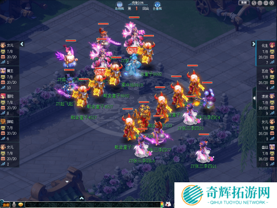 进入比赛后,【起飞起飞】选择放弃恢复,启用“女儿、魔王、力普陀、狮驼、女儿”组成的双封面伤阵容,【张三李四】选用“化生、五庄、凌波、女儿、盘丝”组成的保大核阵容。