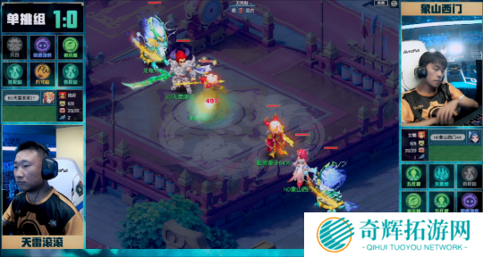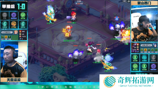 进入比赛后,【象山西门】凭借神木林出色的清宠能力逐渐构建召唤兽优势,【天雷滚滚】只要拉出的召唤兽,次回合就会面临被清掉的局面。不过,【天雷滚滚】并没有着急,他不仅凭借极限加点的方式轻松抗住伤害,还靠着紧箍咒磨掉【象山西门】血量。进入决赛时刻前,【天雷滚滚】将【象山西门】“兽魂锥”位置的召唤兽清掉避免意外;进入决赛时刻后,【天雷滚滚】使用五行法术将【象山西门】击倒,并靠着咒师普陀“秘术”经脉令其无法起身,成功拿下首局比赛。