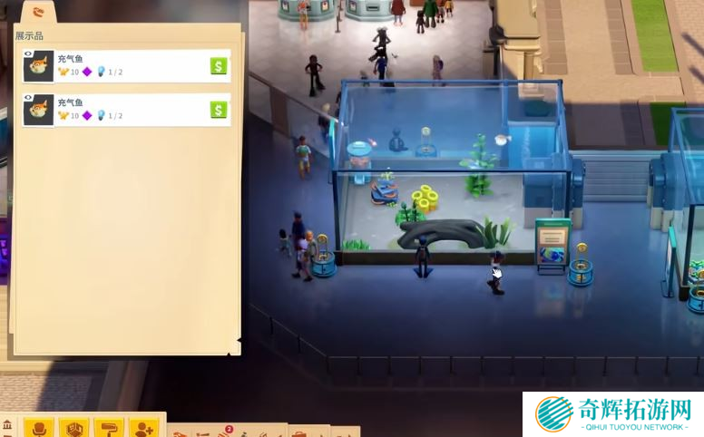 展示水族馆主要用于吸引游客并提升博物馆评分,而繁殖水族馆则用于培育和出售鱼类。合理分配空间,确保两者都能发挥最大效益。