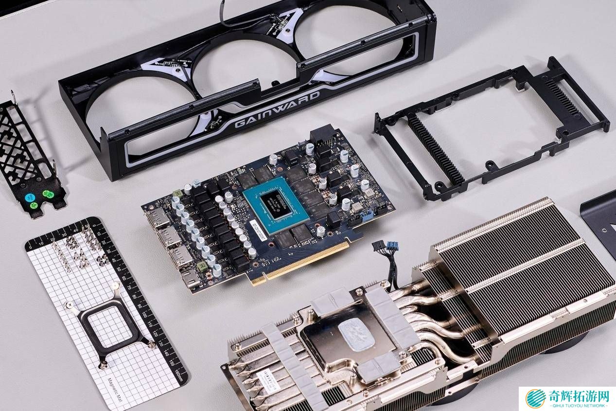从外观上看,耕升RTX 5070 Ti 炫光 超OC采用了简约而耐看的设计语言,散热器名为“炫之黑曜石”,扇叶则被称为“炫风之刃”。显卡顶部和末端均配备了大面积的RGB灯带,为玩家提供了炫酷的灯效体验。拆解后我们发现,其内部构造规整,散热鳍片上覆盖有真空腔均热板和七根镀镍热管,确保在高负荷下也能保持良好的散热性能。