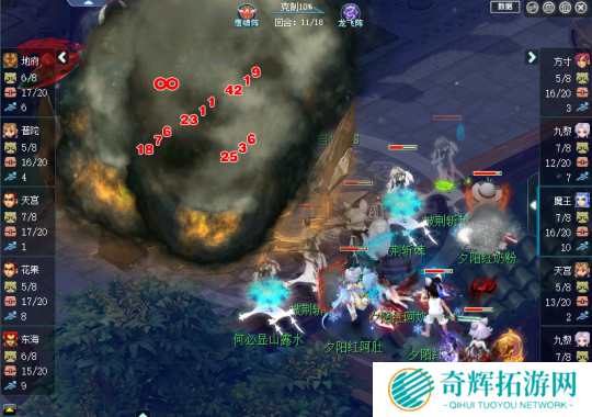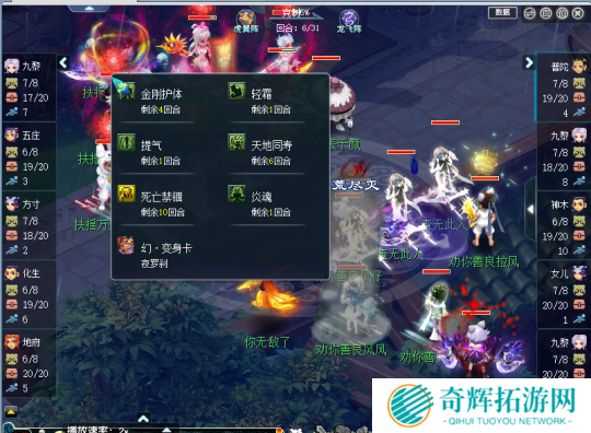 25回合,扶摇万里点杀劝你善良防御位九黎城,伤害不足,次回合化生寺拉出瞬法单法须弥补刀,没想到秒在了劝你善良的残血孩子身上,九黎城三点灵元噬魔神壶也完全浪费。说是迟那时快,扶摇万里的残血化生寺在28回合也成功领取了一份大死亡,并被劝你善良鲲鹏击倒在地。