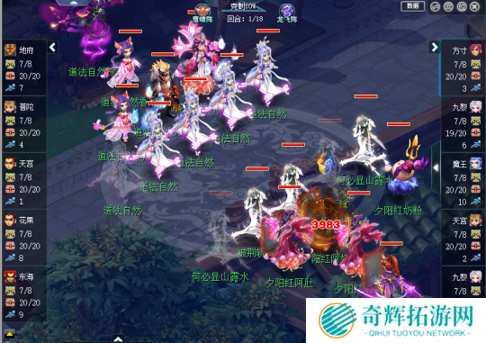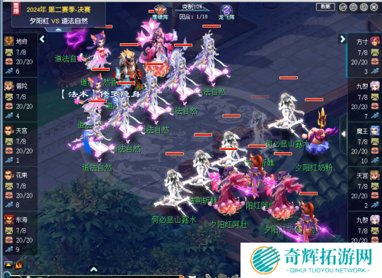 道法自然多个单位被封杀倒地,宝宝也很难抗住夕阳红九黎城的伤害,最终18回合,道法自然全军覆没,夕阳红成功夺冠!
