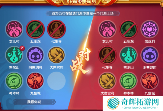 天科组决赛由扶摇万里对战劝你善良,ban选方面,扶摇万里被ban女儿地府组合,劝你善良被ban地府九黎组合,双方均可以上场212阵容。