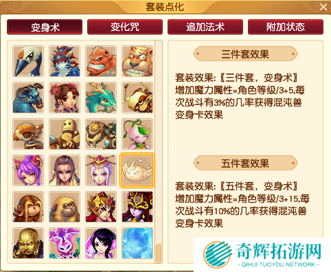 法系门派的套装比较单一,基本上都是以魔力动物套为主,而定心套会比动物套伤害高一点,但是考虑到定心套是有回合数的限制,五件套只能生效9回合。在全民PK赛这种大家的硬件都是顶级的情况下,9回合能决定比赛胜利结局的几率比较低,所以还是建议大家首选魔力动物套为主。