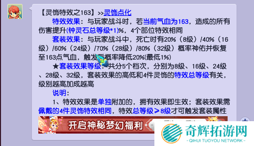 这次全民PK赛每个角色均可随意更换灵饰附加的点化效果,按照目前的主流法系基本都是选163特效,关键的时候可能有神佑的效果,以及提升伤害。