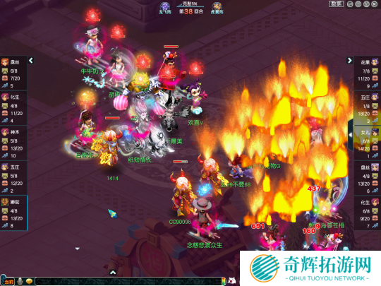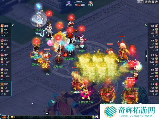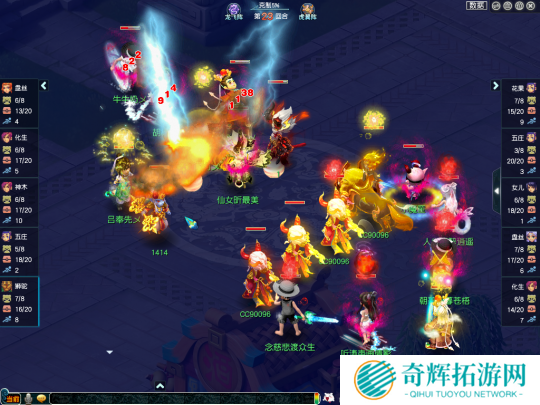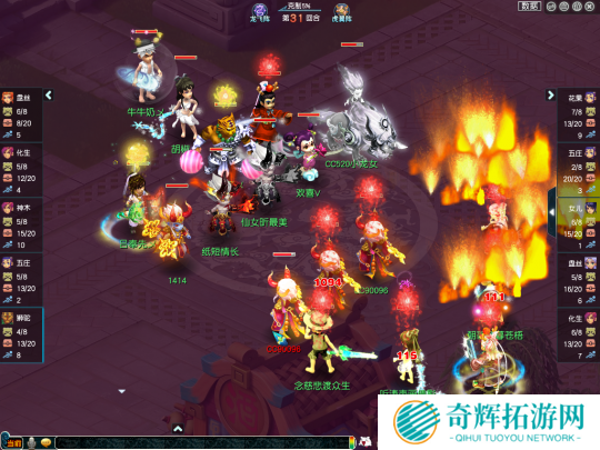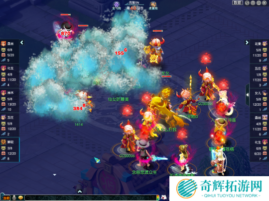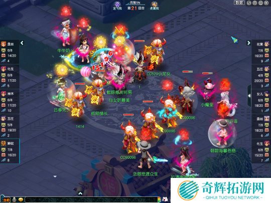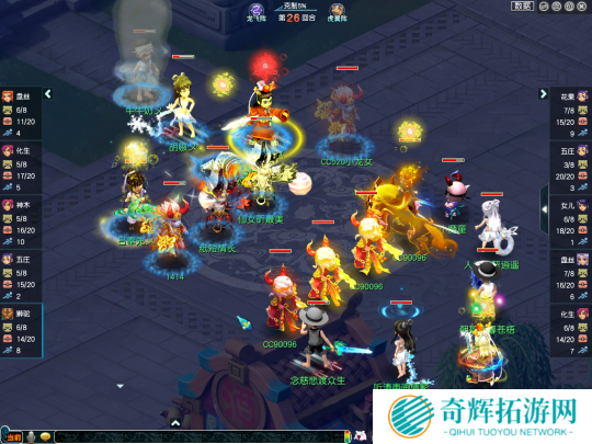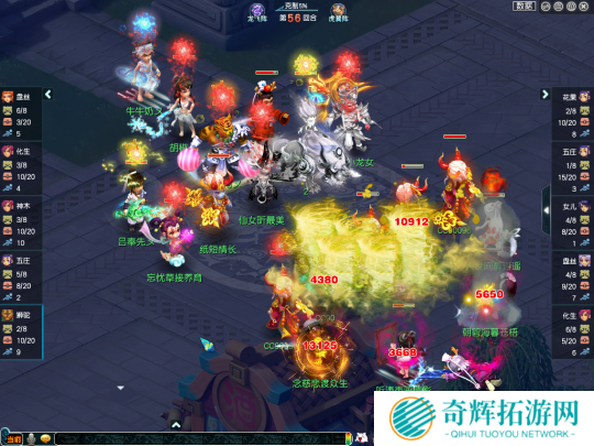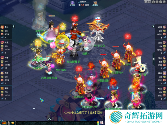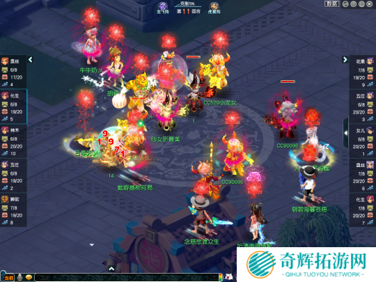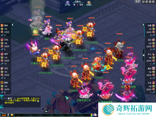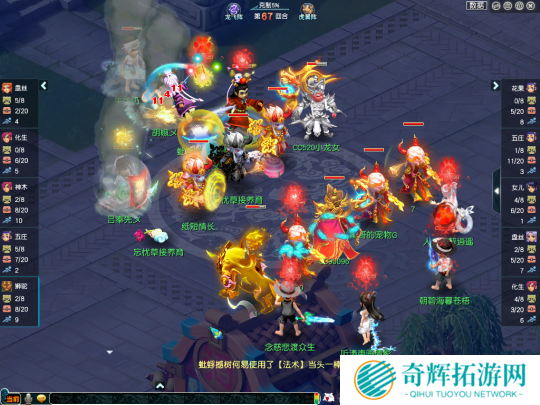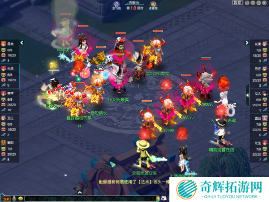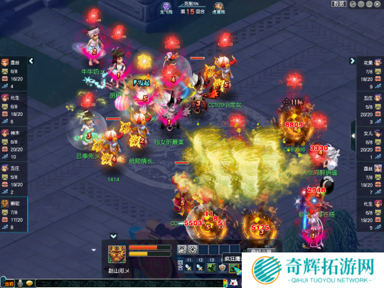 次回合,珍宝阁花果山继续进攻,当头一棒二连送走紫禁城神木林和五庄观召唤兽,使其在能操作的单位上面陷入劣势。