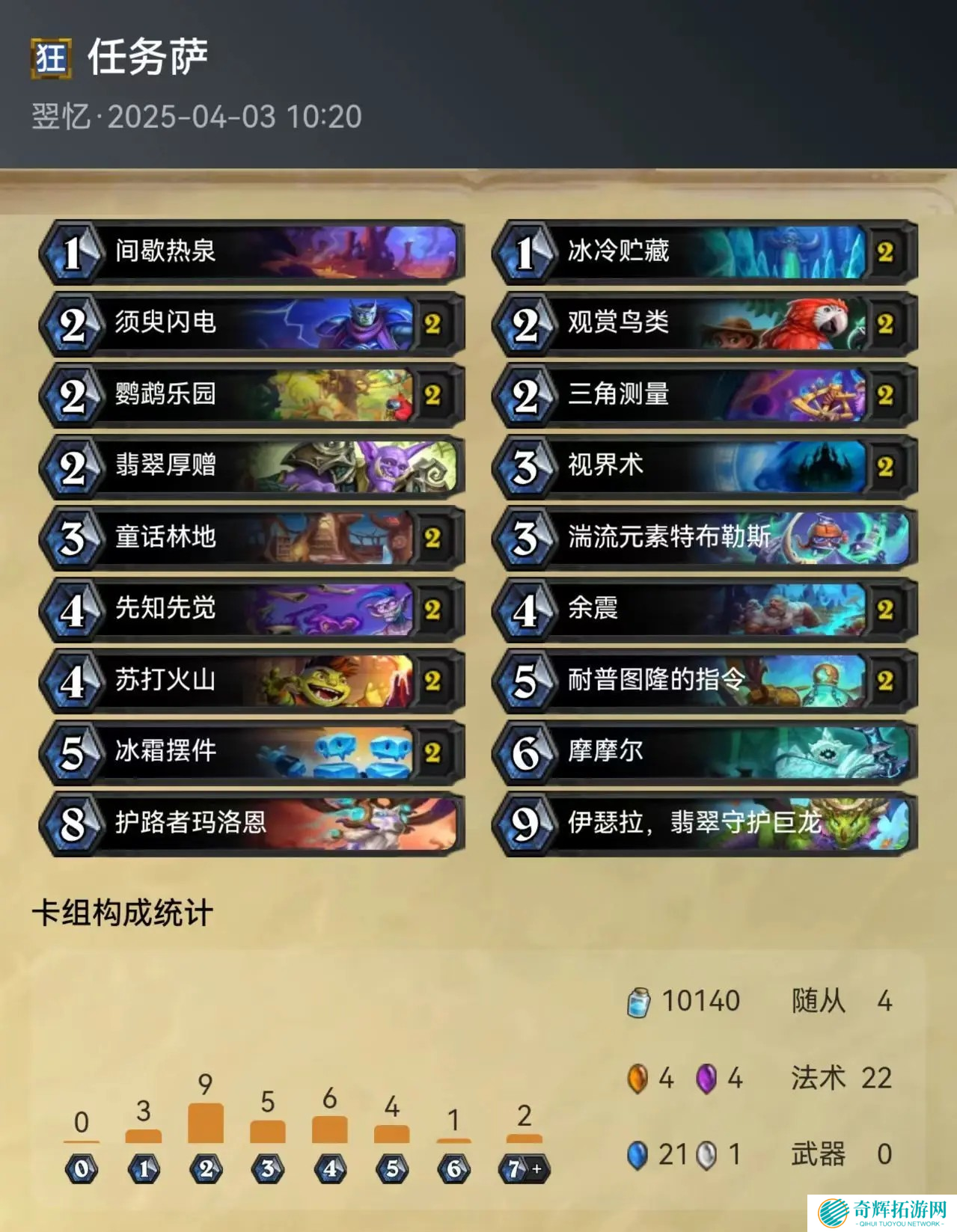 这套德鲁伊卡组不带荒野之神,核心是通过【周卓】+【破碎映像】洗入牌库,再用【科隆加恩】偷到对面带的荒野之神卡,最后用【弗蕾亚】复制来实现召唤。